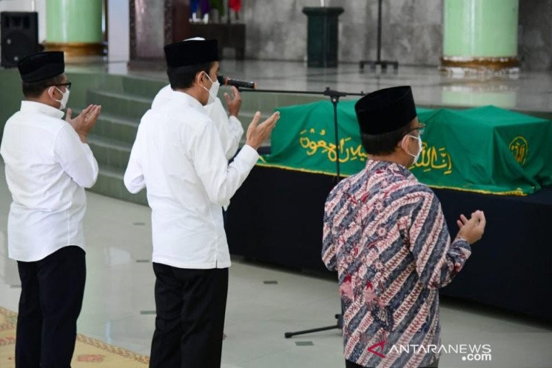 Kepala Negara yang tampak didampingi Menteri Sekretaris Negara, Pratikno, turut menyalatkan jenazah almarhum setibanya di masjid Ulil Albab UII sekira pukul 08.00 WIB.