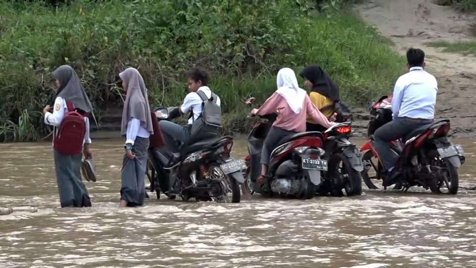 Alfi mengaku, ketika air sungai meluap, apalagi saat musim hujan seperti sekarang, ia bersama pelajar lainnya kerap terlambat bahkan gagal melanjutkan perjalanan menuju sekolah.
