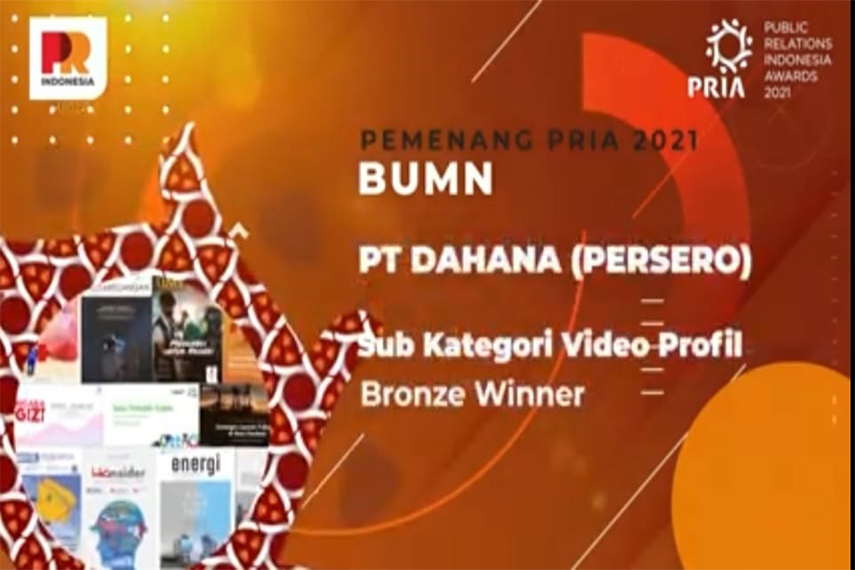 PT DAHANA kembali meraih penghargaan dari Public Relation Indonesian Awards (PRIA) 2021, dengan raihan Bronze Winner sub kategori Video Profil pada kategori BUMN. Acara ini disiarkan secara langsung melalui kanal Youtube PR Indonesia pada Rabu siang, 31 Maret 2021.
