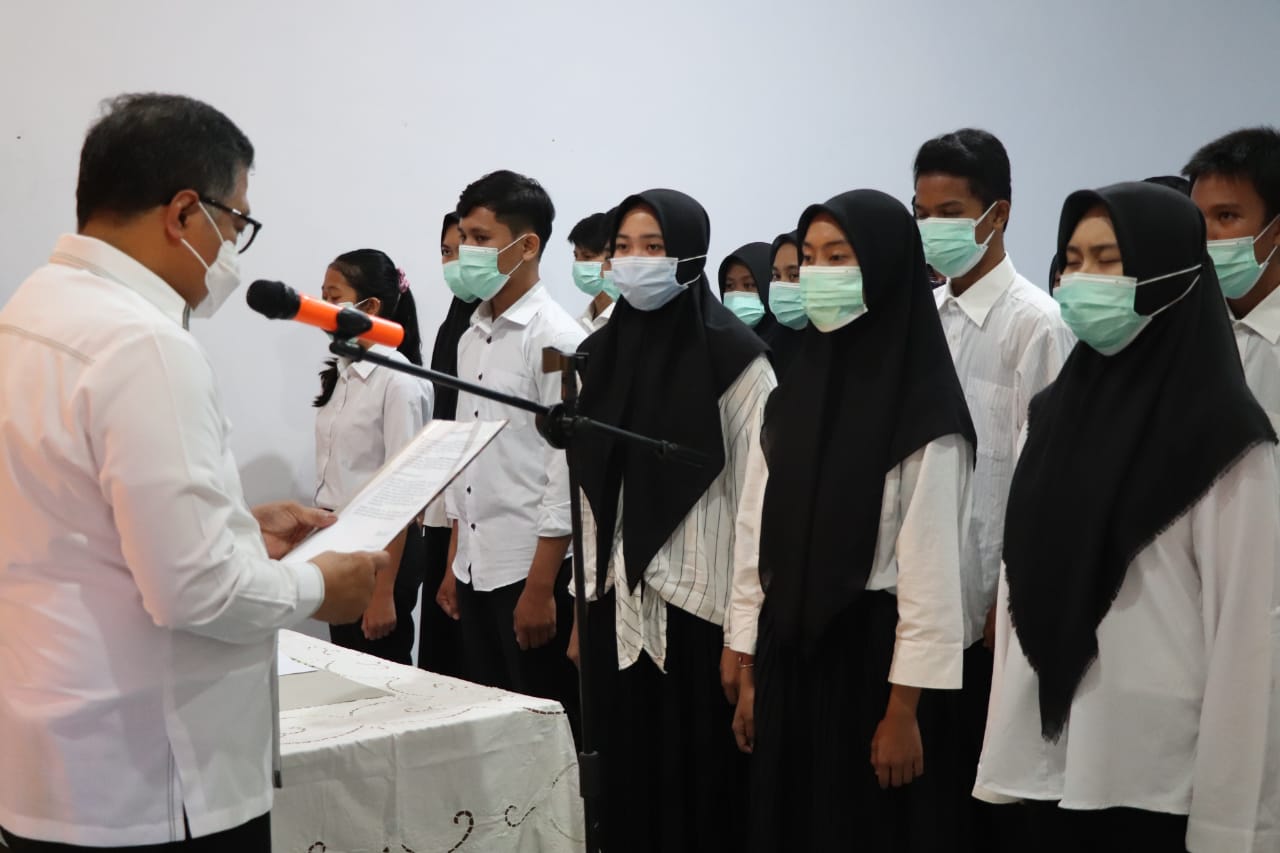MAMUJU- Sekretaris Daerah Provinsi Sulbar, Muhammad Idris DP, mengukuhkan Pengurus Forum Anak Provinsi Sulbar Periode 2021-2022 di Hotel Lestari, Mamuju, Jumat (30/04/2021).