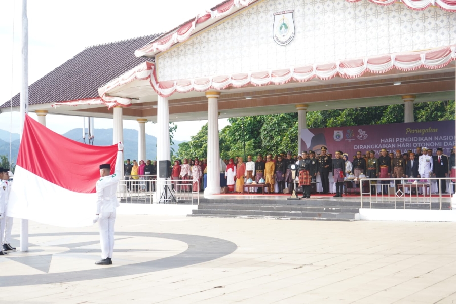 SIBERINDO.CO— Pemprov Sulbar menggelar upacara Peringatan Hari Pendidikan Nasional (Hardiknas) dirangkaikan dengan Hari Otonomi Daerah ke- XXVII, di Lapangan Upacara Rujab Gubernur Sulbar, Selasa 2 Mei 2023.