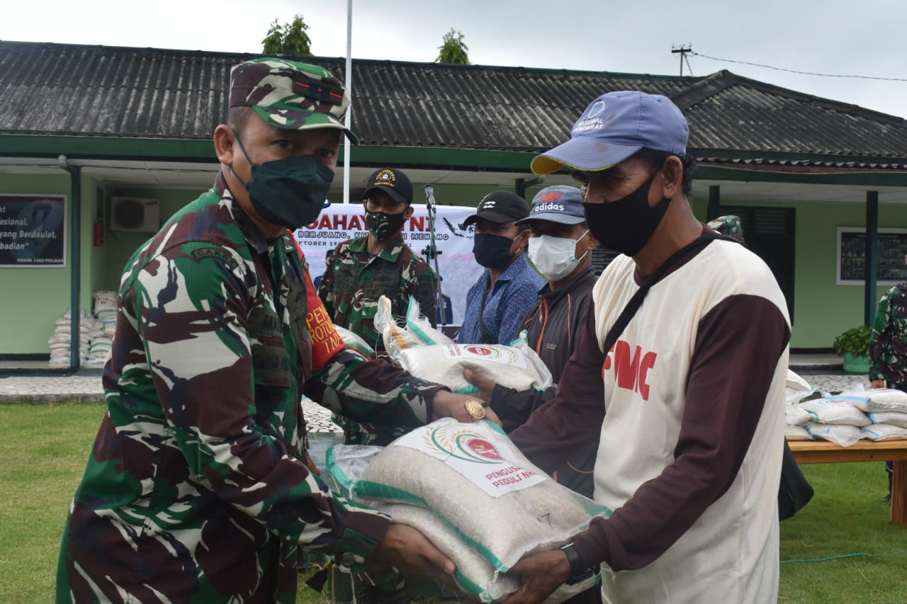 Menurut Dandim, penyaluran bantuan beras tersebut dilakukan Babinsa pada setiap Koramil. Setiap kepala keluarga mendapatkan 10 kilogram beras, yang diantarkan langsung oleh Babinsa di wilayah.