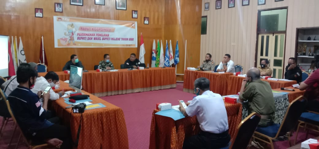MAJENE – Jelang pendaftaran Bakal Calon (Balon) Pemilihan Kepala Daerah (Pilkada) Bupati dan Wakil Bupati Majene 2020, Komisi Pemilihan Umum (KPU) Majene menggelar Rapat Koordinasi (Rakor) pengamanan, di ruang rapat Kantor KPU Majene, Senin (31/8/2020).