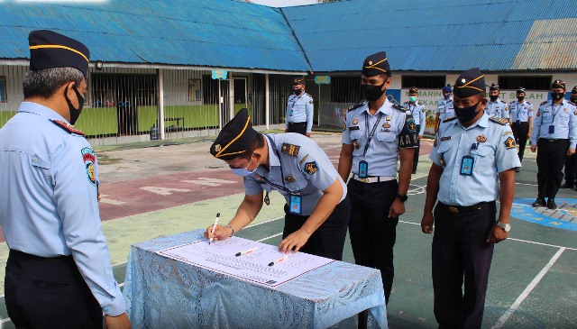 MAJENE – Jajaran Rumah Tahanan Negara (Rutan) Kelas IIB melaksanakan apel pagi pada Kamis (3/11/2020). Agenda utamanya adalah pernyataan netralitas Aparatur Sipil Negara (ASN) dalam Pilkada 2020 dan komitmen untuk selalu menerapkan protokol kesehatan (ASN).
