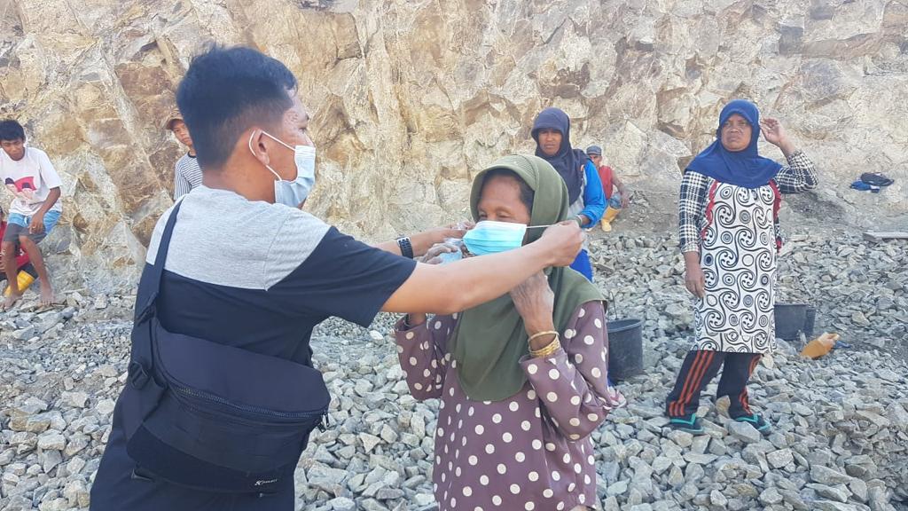 Selain memberikan bantuan bahan pokok, Komunitas SJS juga mengedukasi para pemecah batu, akan pentingnya penerapan protokol kesehatan, demi mencegah penularan virus corona.