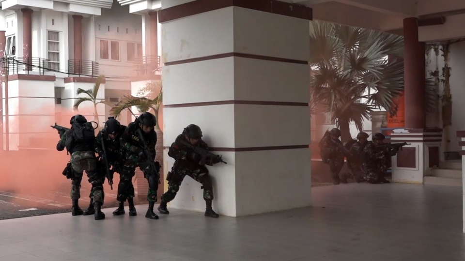 Tidak butuh waktu lama, pasukan khusus Yonif Para Raider 433/Julu Siri berhasil menyudutkan para teroris yang terus memberikan perlawanan termasuk menggunakan bom asap.