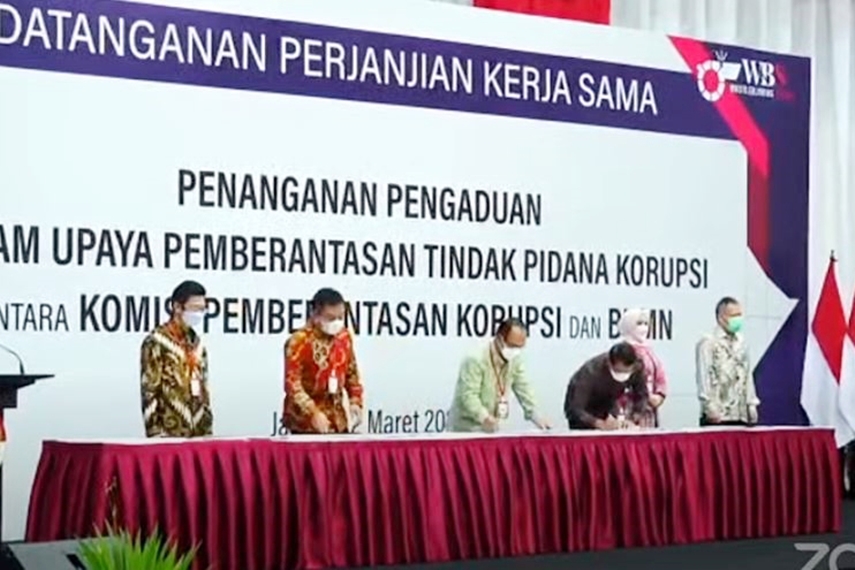 PT Kereta Api Indonesia (Persero) bersama Komisi Pemberantasan Korupsi (KPK) menandatangani Perjanjian Kerja Sama terkait penanganan pengaduan tindak pidana korupsi melalui whistle-blowing system. Kerja sama tersebut ditandatangani oleh Direktur Utama KAI Didiek Hartantyo dan Deputi Bidang Informasi dan Data KPK Mochamad Hadiyana disaksikan oleh Ketua KPK Firli Bahuri serta Menteri BUMN Erick Thohir di Gedung Merah Putih KPK, Jakarta, Selasa, (2/3/21). Dalam kesempatan tersebut terdapat 26 BUMN lain yang juga melakukan kerja sama serupa.