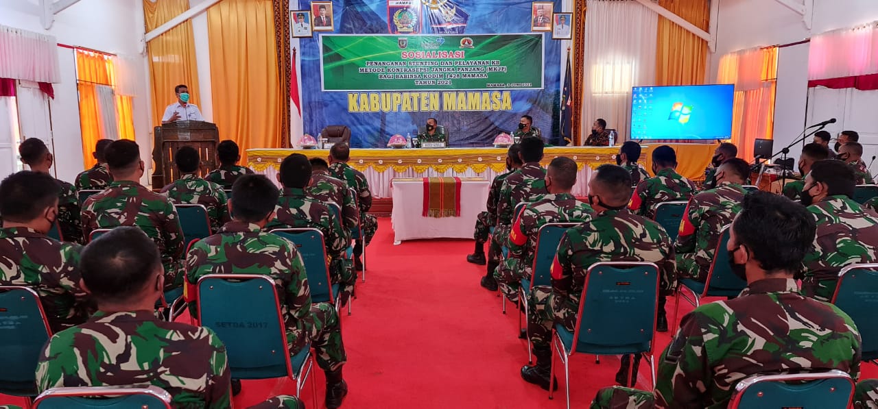 MAMASA- Upaya Percepatan Penurunan kasus stunting, Perwakilan BKKBN Provinsi Sulawesi Barat mengadakan Sosialisasi Penanganan Stunting dan Pelayanan KB Metode Kontrasepsi Jangka Panjang (MKJP) bagi Babinsa Kodim 1428 Mamasa.