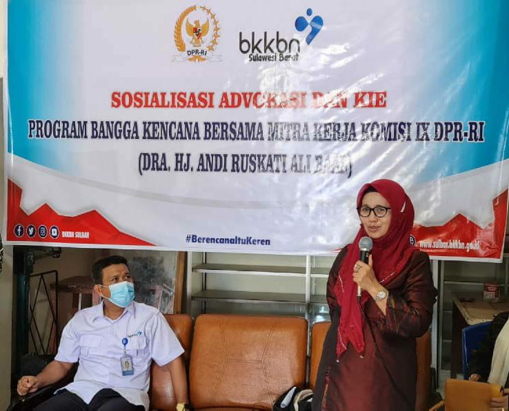 MAMUJU- Anggota Komisi IX DPR-RI Daerah Pemilihan Sulawesi Barat, Dra. Hj. Andi Ruskati Ali Baal menghadiri Sosialisasi, Advokasi, dan Komunikasi, Informasi, dan Edukasi (KIE) Program Bangga Kencana Bersama Mitra Kerja di Masa Pandemi Covid-19, di Kompleks Pasar Tasiu, Kelurahan Kalukku, Kecamatan Kalukku, Mamuju, Kamis (5/11/2020). Hadir dalam acara ini sekitar 30 orang pasangan usia subur (PUS).