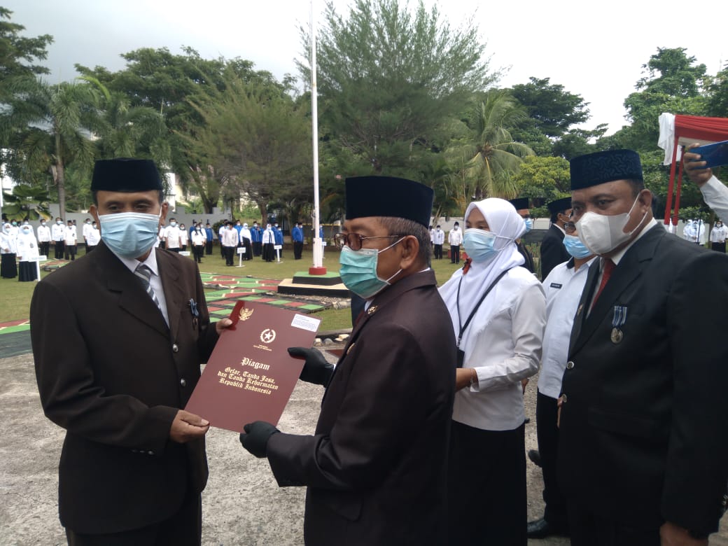 Saat menyerahkan tanda kehormatan atas pengabdian ASN itu, gubenur didampingi Kepala Kemenag Sulbar HM Muflih B Fattah. Selain itu, gubernur juga menyerahkan bantuan alat pelindung diri (APD) bagi kesehatan di masa pandemic Covid-19 kepada lima pondok pesantren.
