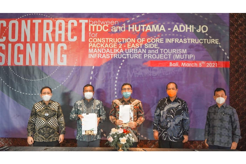 The Nusa Dua — PT Pengembangan Pariwisata Indonesia (Persero) atau Indonesia Tourism Development Corporation (ITDC) selaku BUMN pengembang dan pengelola The Nusa Dua, Bali dan Kawasan Ekonomi Khusus (KEK) Mandalika/The Mandalika, Lombok, NTB bersama Joint Operation PT Hutama Karya (Persero) – PT Adhi Karya (Persero), Tbk (JO HUTAMA-ADHI) menandatangani Kontrak Paket II Mandalika Urban Tourism and Infrastructure Project (MUTIP) untuk pembangunan infrastruktur dasar di area Timur The Mandalika. Jumat (05/03/2021)