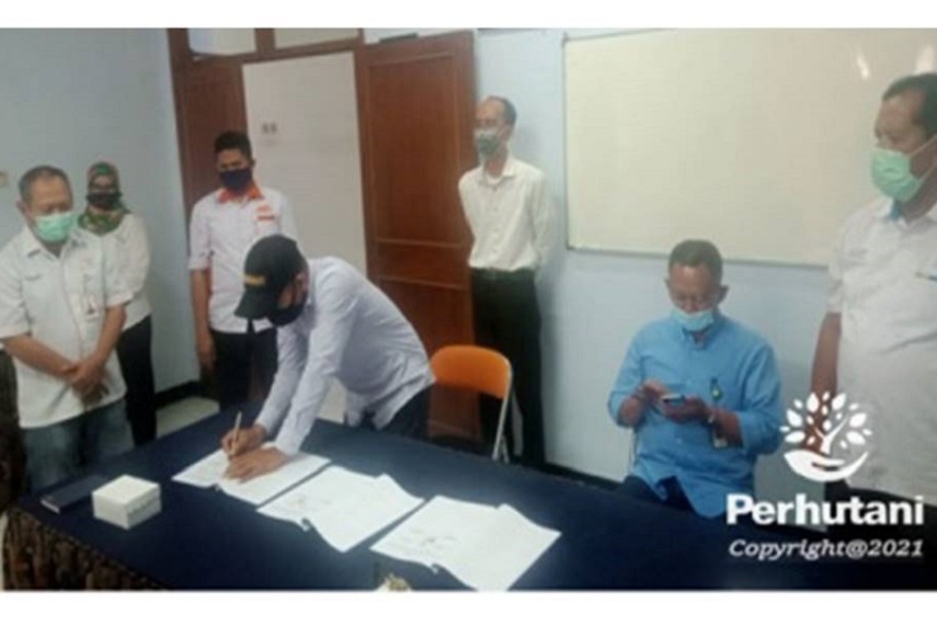 MALANG – Perhutani Kesatuan Pemangkuan Hutan (KPH) Malang bersama PTPN X dan Kelompok Tani Hutan (KTH) Bangkit Sejahtera dan KTH Tunggul Wulung menandatangani perjanjian budidaya tanaman Agroforestry tebu bertempat di Kantor KPH Malang, Rabu (3/3).