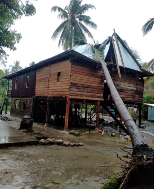 “Musibah bencana alam berupa angin kencang, mengakibatkan bangunan rumah salah satu warga kami bernama Mustakim, rusak parah tertimpa pohon tumbang,“ kata Kepala Desa Lagi-Agi, Firman, kepada Paceko.com grup Siberindo.co melalui pesan singkat, Senin siang (05/04/2021)