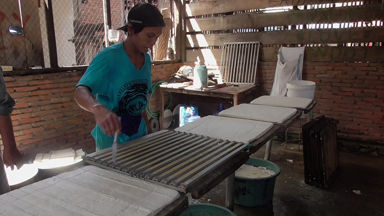 “Kita diprotes, tempenya tipis dan sebagainya. Saya sampaikan, apa boleh buat, begini yang bisa dibuat pabrik, karena mereka juga ikut ukuran harga kedelai,“ kata salah seorang penjual, Kasina.