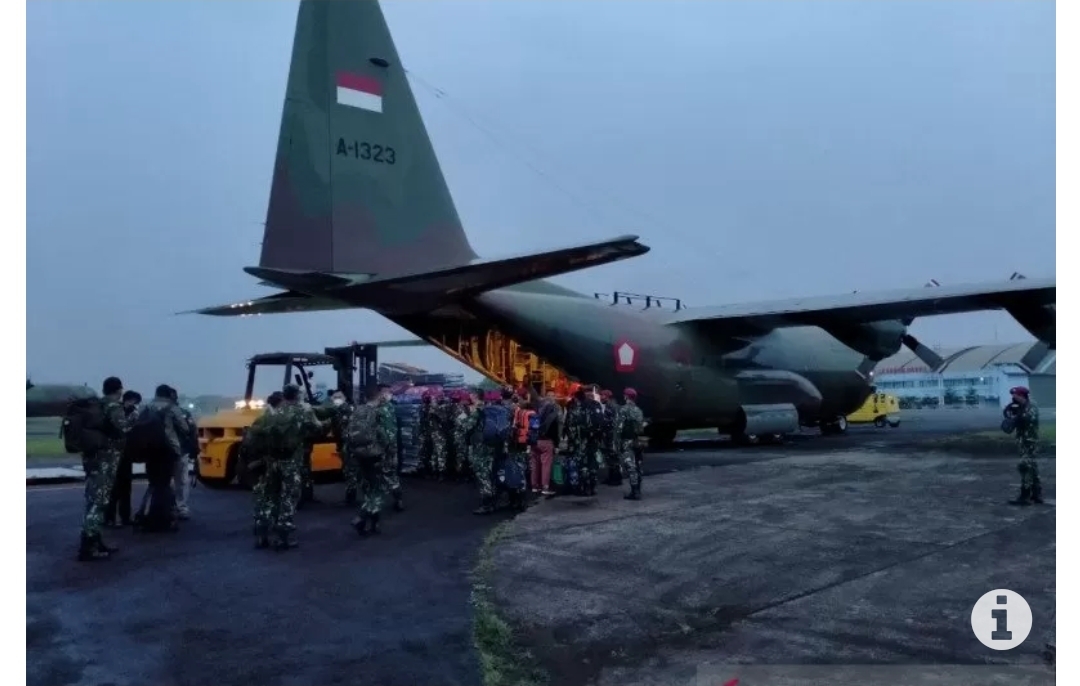 Seluruh personel berikut perlengkapan diterbangkan dari Pangkalan Udara TNI AU Halim Perdanakusuma menggunakan C-130 Hercules nomor registrasi A-I323.