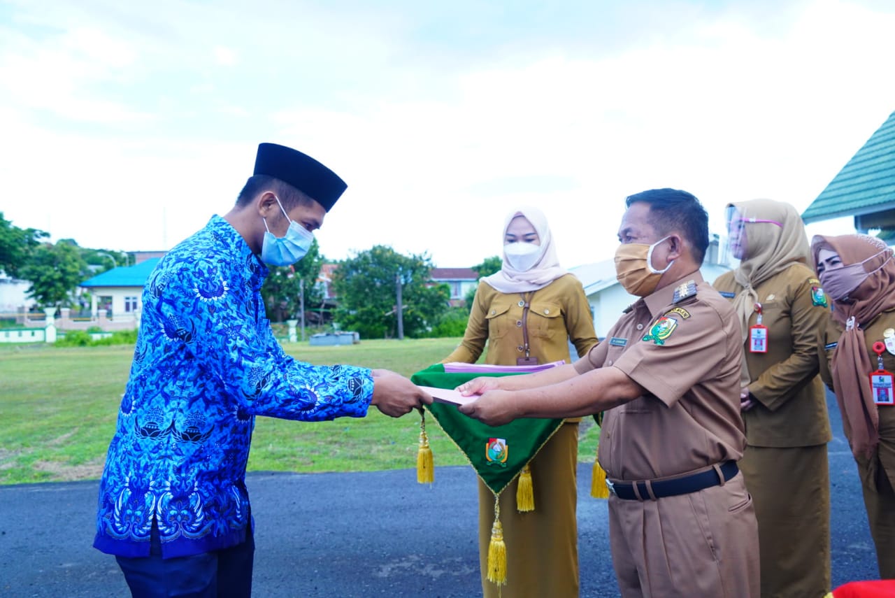 MAJENE – Bupati Majene Lukman menyerahkan Surat Keputusan (SK) Calon Pegawai Negeri Sipil (CPNS) Kabupaten Majene untuk formasi 2019 di Halaman Pendopo Rujab Bupati Majene, Senin 8 Februari.