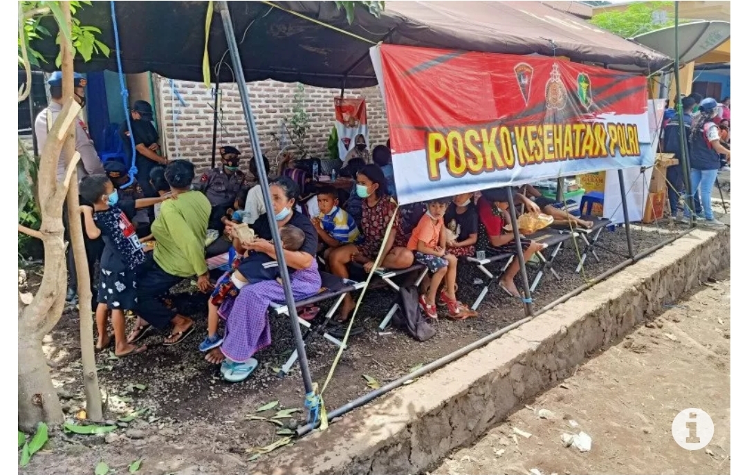 Ribuan penduduk yang kini kehilangan tempat tinggalnya mengungsi di sepuluh tempat penampungan sementara yang tersebar di Kecamatan Ile Boleng.