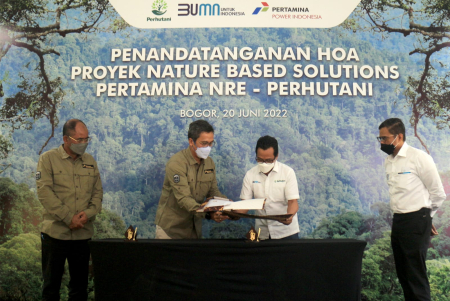 PT Pertamina Power Indonesia sebagai subholding power new and renewable energy dari PT Pertamina (Persero) melakukan penandatanganan head of agreement (HOA) dengan Perum Perhutani. Penandatanganan HOA dilakukan antara Chief Executive Officer Pertamina NRE Dannif Danusaputro dan Direktur Operasi Perum Perhutani Natalas Anis Harjanto, disaksikan langsung Wakil Menteri BUMN I Pahala Nugraha Mansury serta Direktur Logistik dan Infrastruktur PT Pertamina (Persero) Mulyono, di Sentul Eco Edu Tourism Forest, Bogor, Jawa Barat, Senin, 20 Juni 2022.