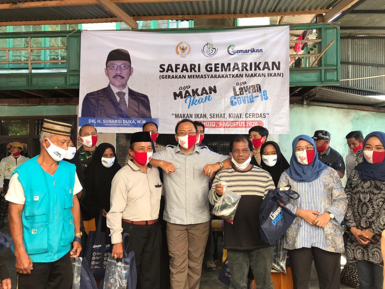 Pada hari Minggu, 9 Agustus 2020 KKP bersama Komisi IV DPR RI melaksanakan kegiatan Safari Gemarikan di Kabupaten Mamuju yang dihadiri oleh Anggota Komisi IV DPR DR. Suhardi Duka, M.M, Direktur Pemasaran KKP, Ketua DPRD Provinsi Sulbar, Wakil Ketua DPRD Kabupaten Mamuju, perwakilan Dinas Kelautan dan Perikanan Provinsi Sulawesi Barat, Polda Sulbar, Dandim 1418 Mamuju, Stasiun Karantina Ikan Kelas II Mamuju, Dinas Kelautan dan Perikanan Kabupaten Mamuju, serta perwakilan masyarakat penerima paket Gemarikan.