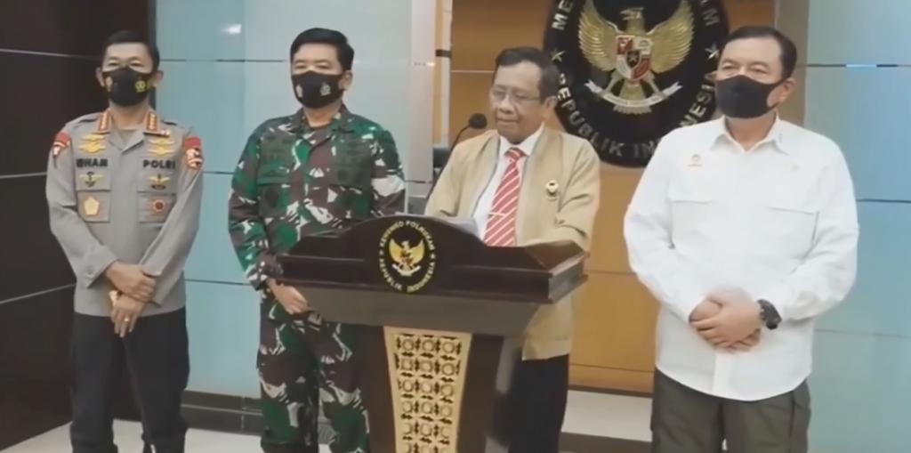 Jakarta – Menkopolhukam, Mahfud MD, mewakili kabinet yang dipimpin Presiden Jokowi menyampaikan pernyataan Pemerintah terkait kondisi politik dan keamanan pasca pengesahan UU Cipta Kerja oleh DPR dan Pemerintah pada tanggal 5 Oktober 2020 lalu.