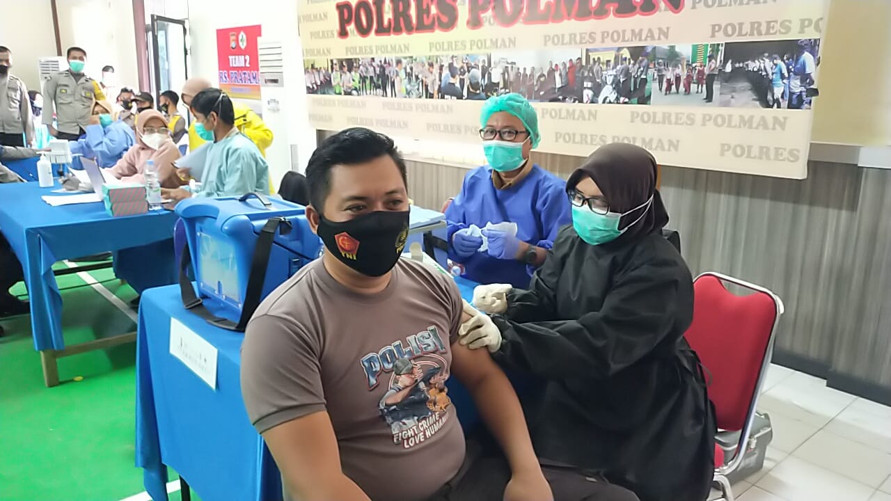 Proses vaksinasi berlangsung selama dua hari, mulai Selasa kemarin (09/03) di Aula Rupatama Polres Polewali Mandar dan Klinik Bhayangkara Polres Polewali Mandar, Kabupaten Polewali Mandar.