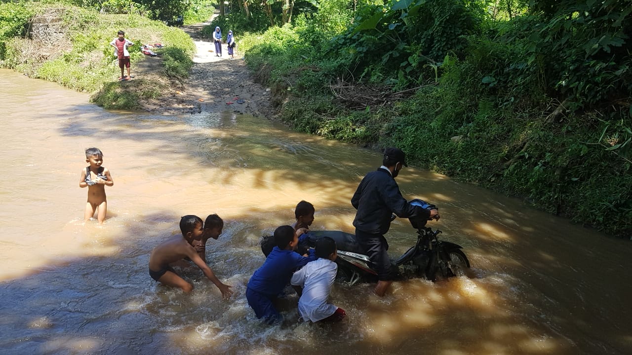 Ketiadaan akses jalan lain, memaksa anak-anak di Dusun ini untuk mengalahkan rasa takut, menerobos arus sungai demi menuntut ilmu.