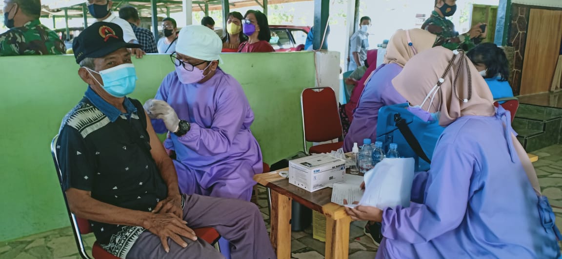 POLMAN– Puluhan Purnawirawan TNI, mengikuti serbuan vaksinasi yang digelar Kodim 1402/Polman.