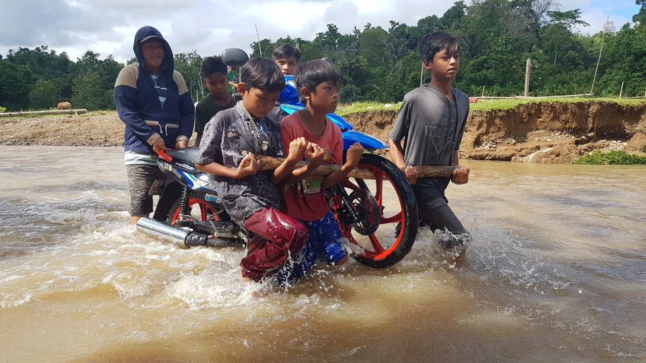 Diketahui, Sungai Mambu yang dilintasi warga merupakan batas Desa Batupanga, Kecamatan Luyo dan Desa Arabua, Kecamatan Tutar.
