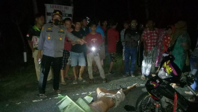 Majene — Kembali Unit Laka Lantas Polres Majene tangani kecelakaan lalulintas di Dusun Leba, Desa Pesuloang, Kecamatan Pamboang, Selasa (12/01/2021) malam.