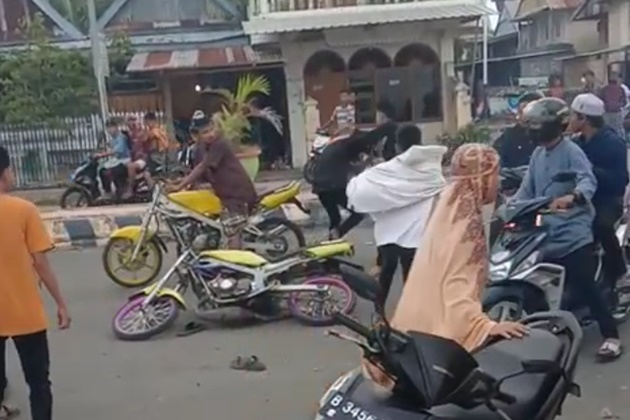 Dalam potongan video pendek yang telah beredar luas media sosial, tampak seorang remaja tiba-tiba menyerang remaja lainnya yang sedang duduk di atas motor, hingga akhirnya terlibat baku pukul.