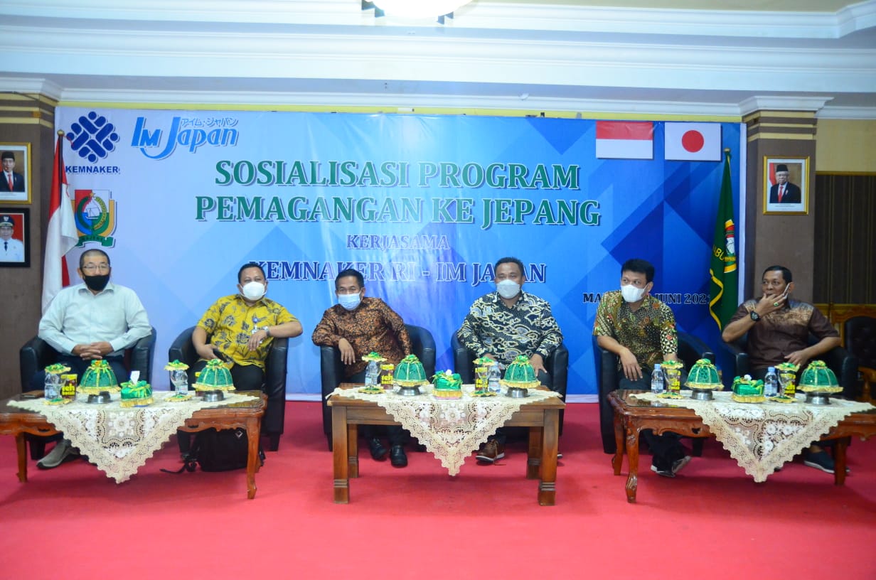 MAJENE – Dinas Ketenagakerjaan dan Transmigrasi (Disnakertrans) Kabupaten Majene menggelar Sosialisasi Program Pemagangan ke Jepang bekerjasama Kementerian Tenaga Kerja RI dengan International Manpower Development Organization Japan, di ruang Pola Kantor Bupati Majene, Sabtu (12/06/2021).