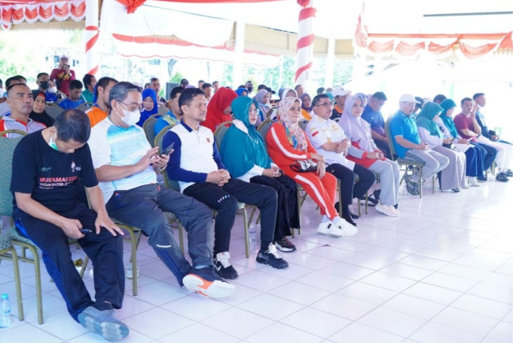 Kegiatan sosialisasi, diawali dengan senam bersama, yang diikuti beberapa Pimpinan OPD, Camat Banggae dan Banggae Timur, para lurah dan kepala lingkungan. (hfd)
