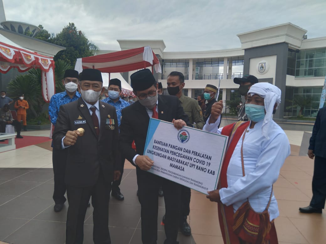 Dalam peringatan Hari Bakti Transmigrasi ke-70 tingkat nasional, Menteri Desa PDTT Republik Indonesia Abdul Halim Iskandar menjadi Pembina upacara sekaligus menyampaikan sambutannya. Pada kesempatan ini, menteri didampingi gubernur, dan Kepala BPN Sulbar serta Kepala Dinas Transmigrasi Sulbar H Ibrahim menyerahkan bantuan pangan dan peralatan kesehatan pencegahan Covid-19.