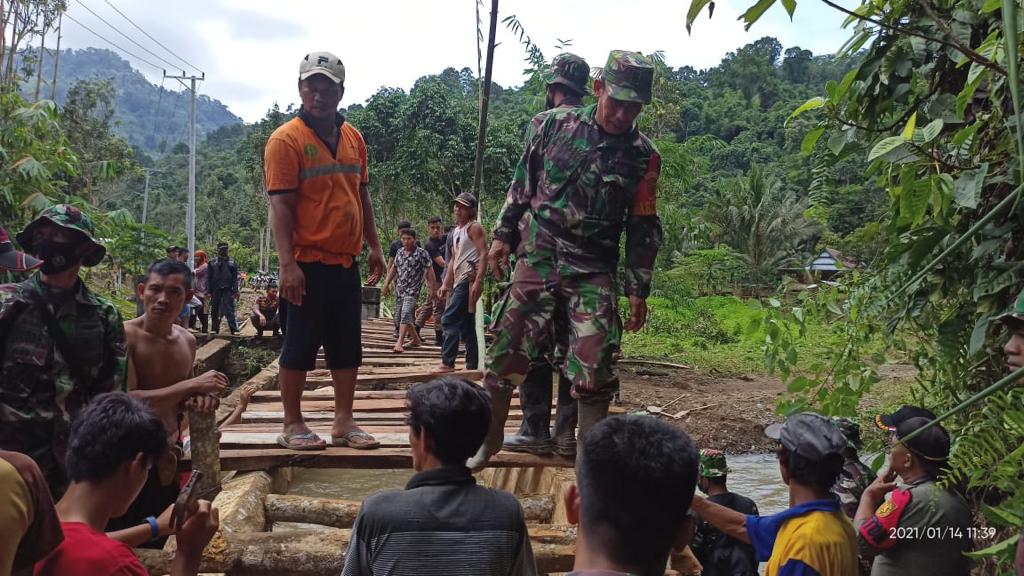 “Untuk itu anggota kita bagi, sebagian dikerahkan untuk membuat jembatan darurat berbahan kayu dan bambu, agar aktifitas warga tidak terhambat,” terangnya.