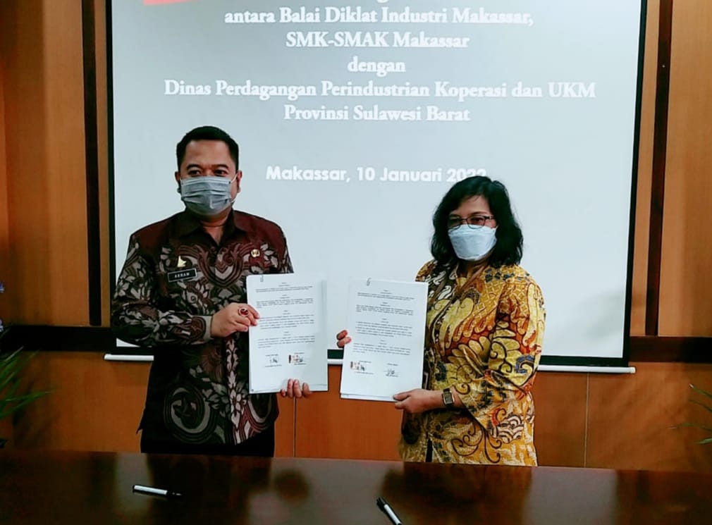 Kerjasama tertuang dalam nota kesepakatan bersama yang ditandatangani Kepala Dinas Perindagkop-UKM Sulbar Bau Akram Dai, dengan pimpinan dua lembaga di bawah naungan Kementerian Peindustrian RI itu. Yakni Kepala BDI Makassar C. Elisa Martina Katili, dan Kepala SMK – SMAK Makassar Bahtiar Rahmani. Penandatanganan dilakukan di Makassar, Senin lalu.