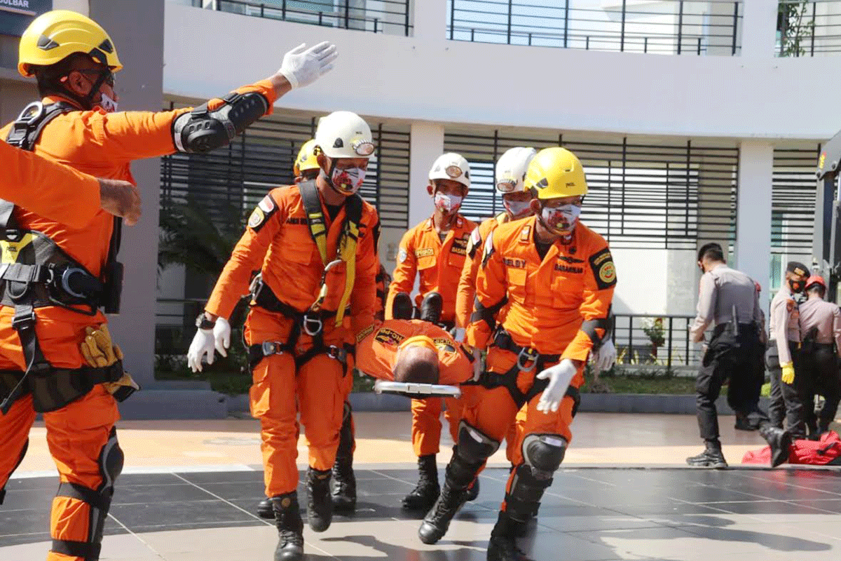 Usai pelaksanaan apel konsolidasi, di tempat yang sama tim gabungan melakukan simulasi penanganan bencana. (idr/sol)