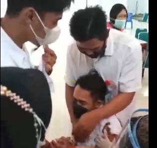“Selama pelaksanaan vaksinasi, kejadian yang terjadi itu kecemasan yang berlebih, sehingga yang bersangkutan itu merasa lemah dan sebagainya, setelah diberikan pertolongan itu hanya 1-2 jam mereka sembuh, dan masalah dalam pemberian layanan vaksinasi itu kami lakukan pemantauan, setelah dilakukan vaksinasi,“ beber Haedar.