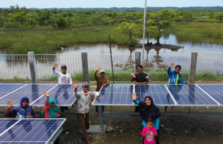 Di Desa Ujung Alang, Cilacap, 80 persen penduduknya bekerja sebagai nelayan musiman dan buruh tambak. Kini warga desa di sana bisa menikmati listrik bersih tanpa emisi yang bersumber dari 15 kincir angin dan 24 solar panel. Sumber penghasil energi itu ditampung di dalam storage penyimpanan daya.