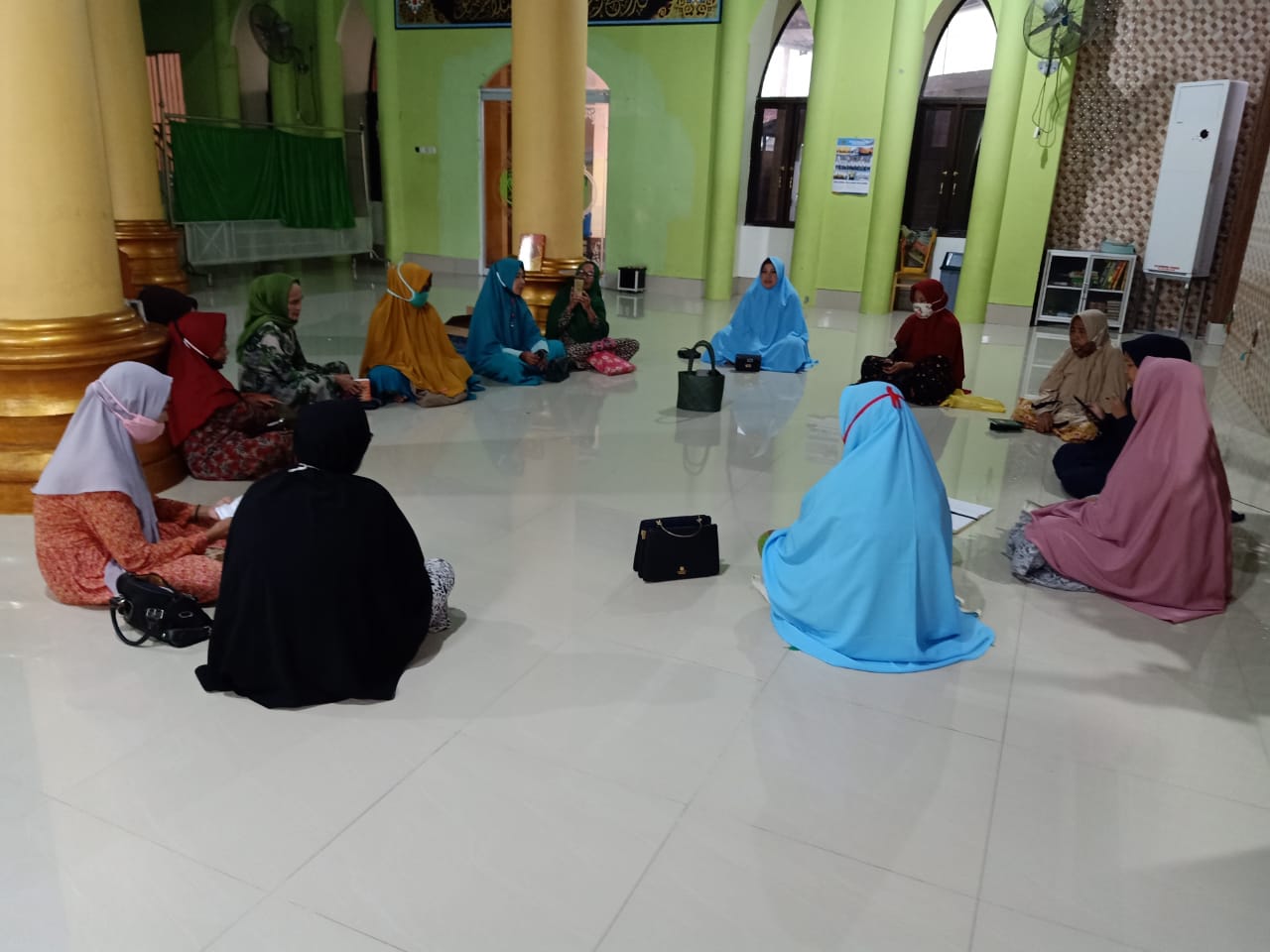 Peserta pengajian pun wajib mengikuti protokol kesehatan 3M dengan memakai masker, menjaga jarak dan mencuci tangan.