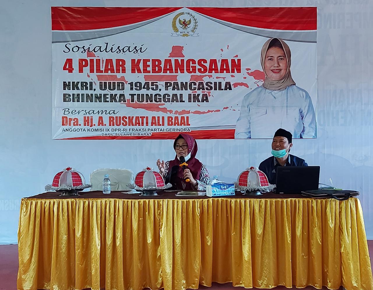Siberindo.co, Polman – Anggota komisi IX DPR RI, Andi Ruskati Ali Baal memaparkan tentang pentingnya wawasan nilai-nilai 4 Pilar Kebangsaan. Hal ini disampaikan pada acara sosialisasi 4 Pilar Kebangsaan yang berlangsung di aula pertemuan Matakali, Polewali Mandar Selasa (17/11/2020).