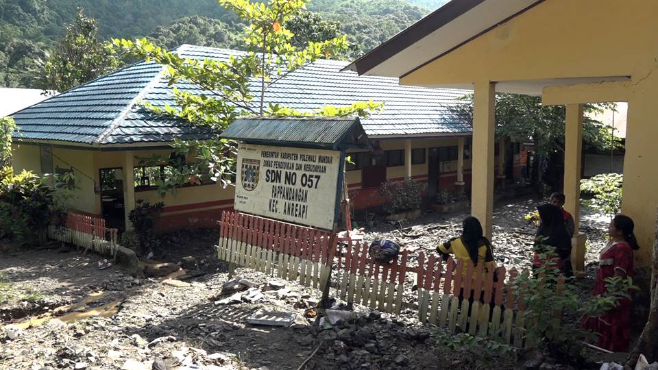 POLMAN– Bangunan Sekolah Dasar Negeri (057) Desa Pappandangan, Kecamatan Anreapi, Kabupaten Polewali Mandar, Sulawesi Barat, diterjang Banjir luapan sungai. Murid terpaksa diliburkan, karena hampir semua ruangan di sekolah ini dipenuhi lumpur hingga tidak dapat difungsikan. Salah ruangan kondisinya rusak parah dipenuhi bebatuan.