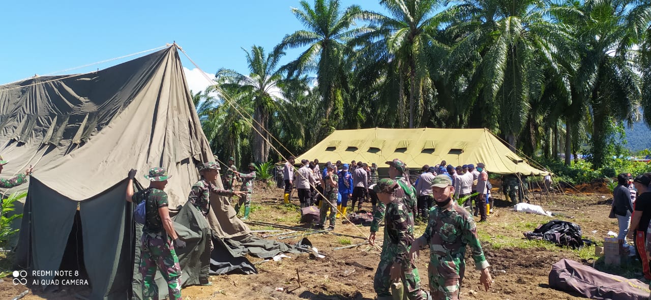 Kerjasama TNI-Polri untuk mendirikan tenda merupakan wujud kepedulian sekaligus sebagai bentuk kekompakan kedua lembaga negara ini. Dandim 1403/Sawerigading Letkol Infanteri Gunawan memimpin langsung pendirian tenda pengungsian di Desa Meli, Kecamatan Baebunta, Luwu Utara.