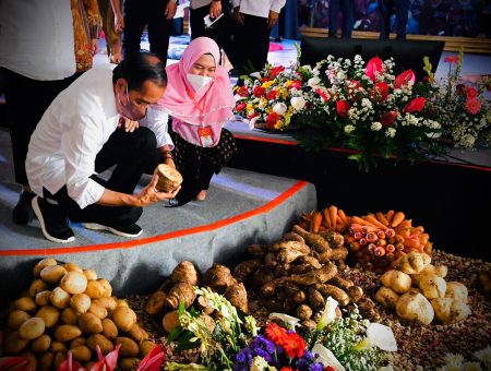 Dalam acara itu disuguhkan berbagai hasil bumi yang dibawa petani dari berbagai daerah. Mulai dari pisang, jagung, hingga buah-buahan lainnya. Hasil bumi tersebut merupakan hasil dari olah lahan pertanian program perhutanan sosial yang dicetuskan oleh Jokowi beberapa tahun silam.
