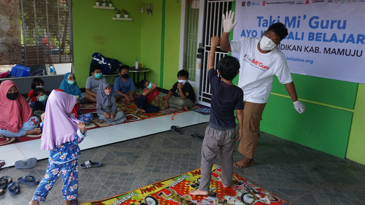 ”Melalui Taki Mi’ Guru ini kami mengajarkan tentang kebencanaan. Apa itu bencana, bagaimana ketika bencana gempa itu datang, apa yang harus dilakukan, cara memakai masker dan jaga jarak. Juga edukasi mengenai trauma healing dan psikososial.” terang Nur Hidayat Rauf, vocal point Human Initiative.