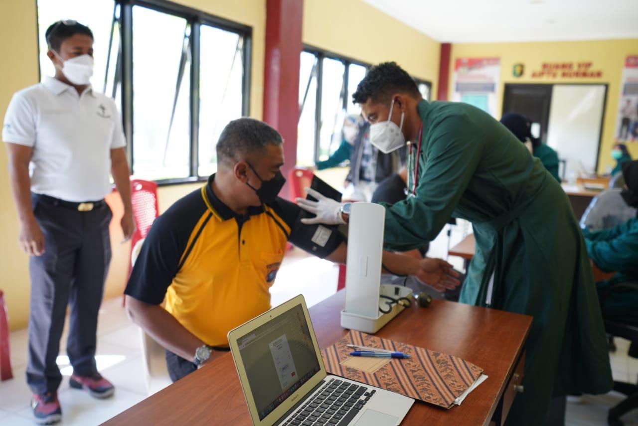 MAMUJU – Vaksin Covid-19 tahap kedua yang dilaksanakan oleh Polda Sulbar berlangsung di rumah sakit Bhayangkara Hoegeng Iman Santoso, di jalan Arteri, Kecamatan Simboro, Kabupaten Mamuju. Jumat (19/3/2021).