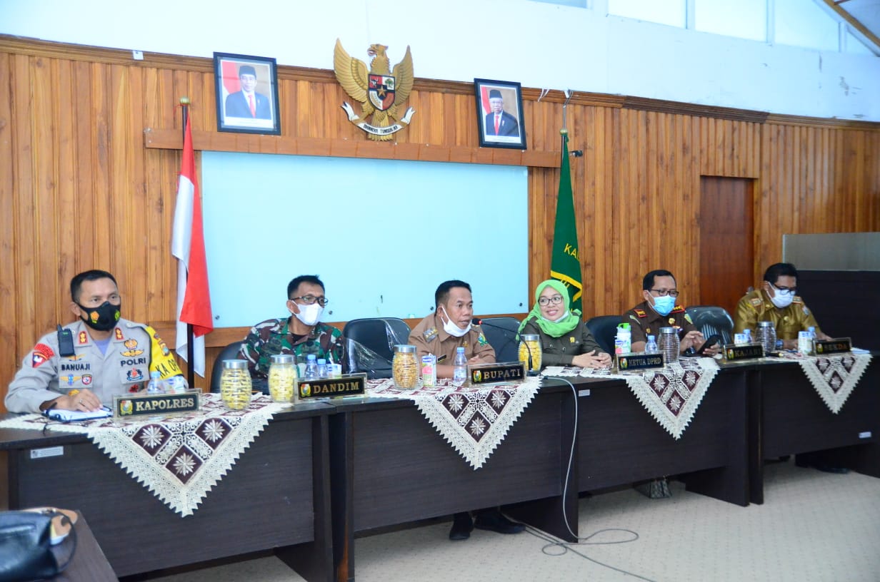 Hadir dalam virtual, Forkopimda Majene yang terdiri dari Ketua DPRD Majene Salmawati, Dandim 1401 Majene Letkol Inf Yudi Rombe, Kapolres Majene AKBP Irawan Banuaji, Kajari Majene Nursurya dan Pj. Sekda Majene Suyuti Marzuki. (***)
