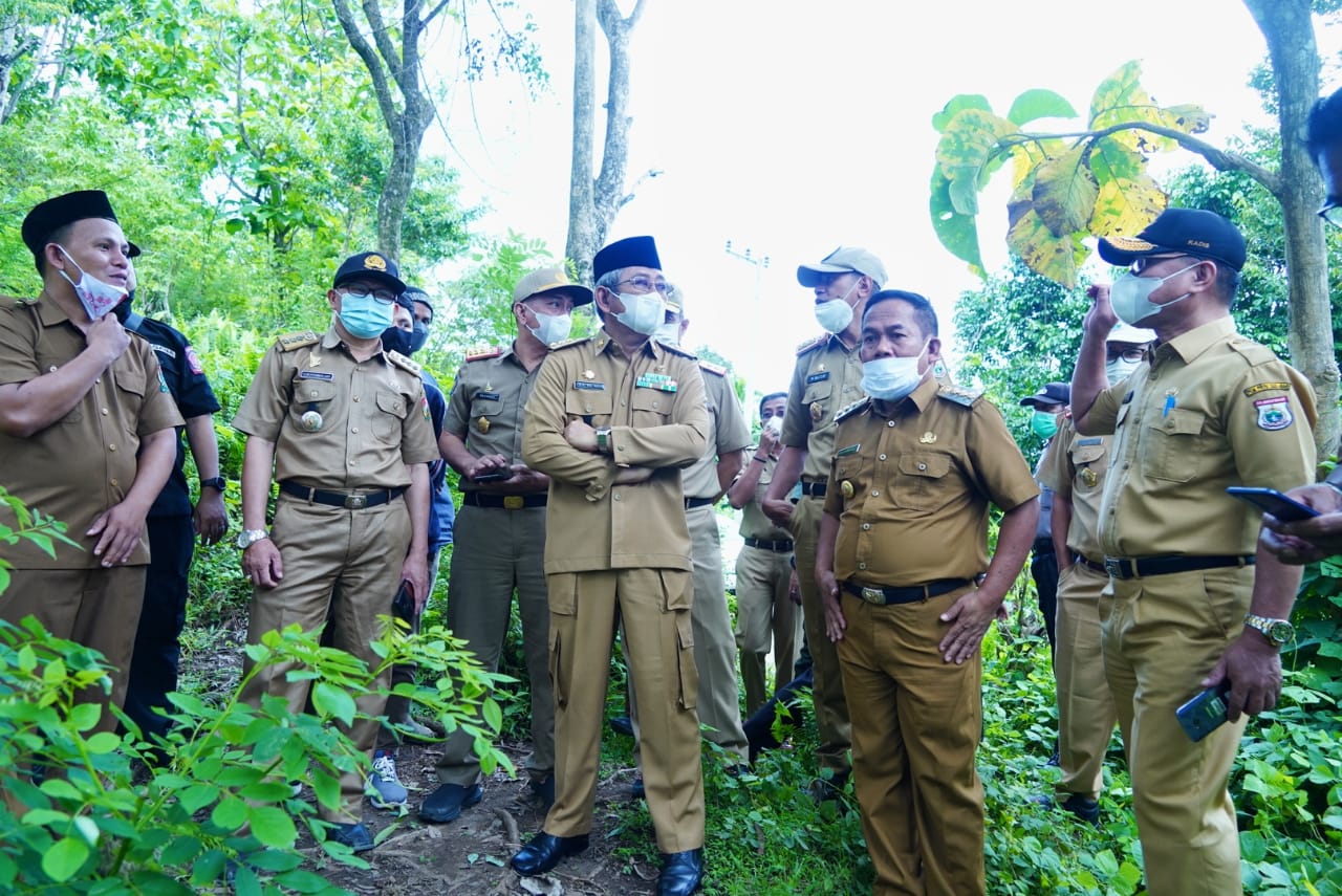 MAJENE – Gubernur Sulawesi Barat Ali Baal Masdar bersama rombongannya menyambangi lokasi relokasi warga korban gempa bumi Kabupaten Majene, di Desa Kabiraan Kecamatan Ulumanda, Selasa (18/05/2021).