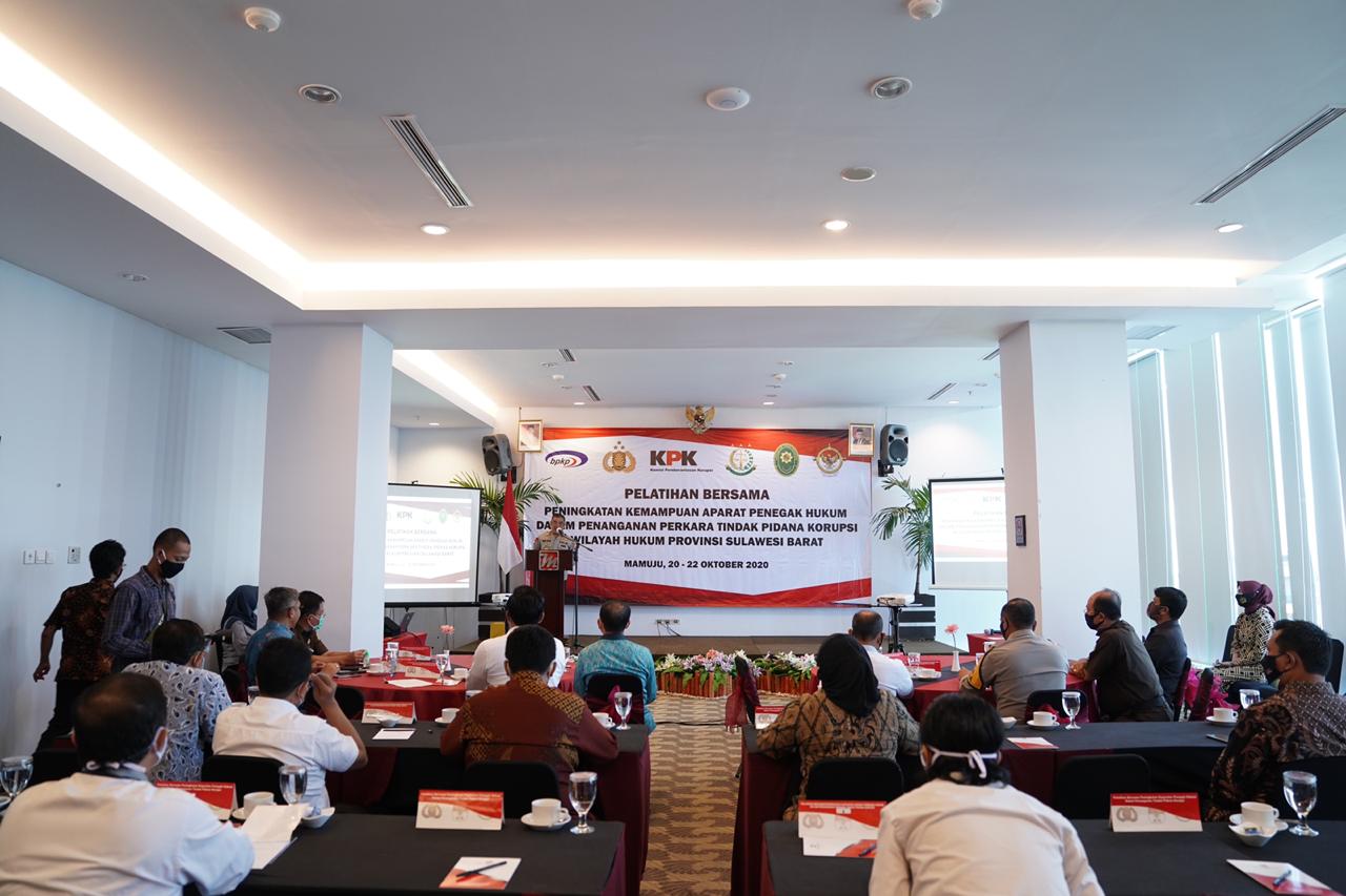 Mapos, Mamuju – Komisi Pemberantasan Korupsi (KPK) menggelar pelatihan bersama untuk peningkatan kemampuan Aparat penegak hukum di wilayah Provinsi Sulawesi Barat pada hari Selasa (20/10/20) di Hotel D’Maleo Mamuju yang rencananya akan digelar selama tiga hari mulai tanggal 20 hingga 23 Oktober 2020.