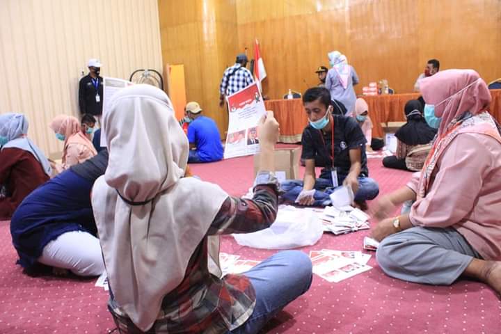 Komisi Pemilihan Umum (KPU) Kabupaten Majene mulai melalukan penyortiran surat suara untuk pemilihan Bupati dan Wakil Bupati Majene 2020. Para tenaga sortir sebelum melakukan tugas diimbau untuk menerapkan protokol kesehatan (Prokes).