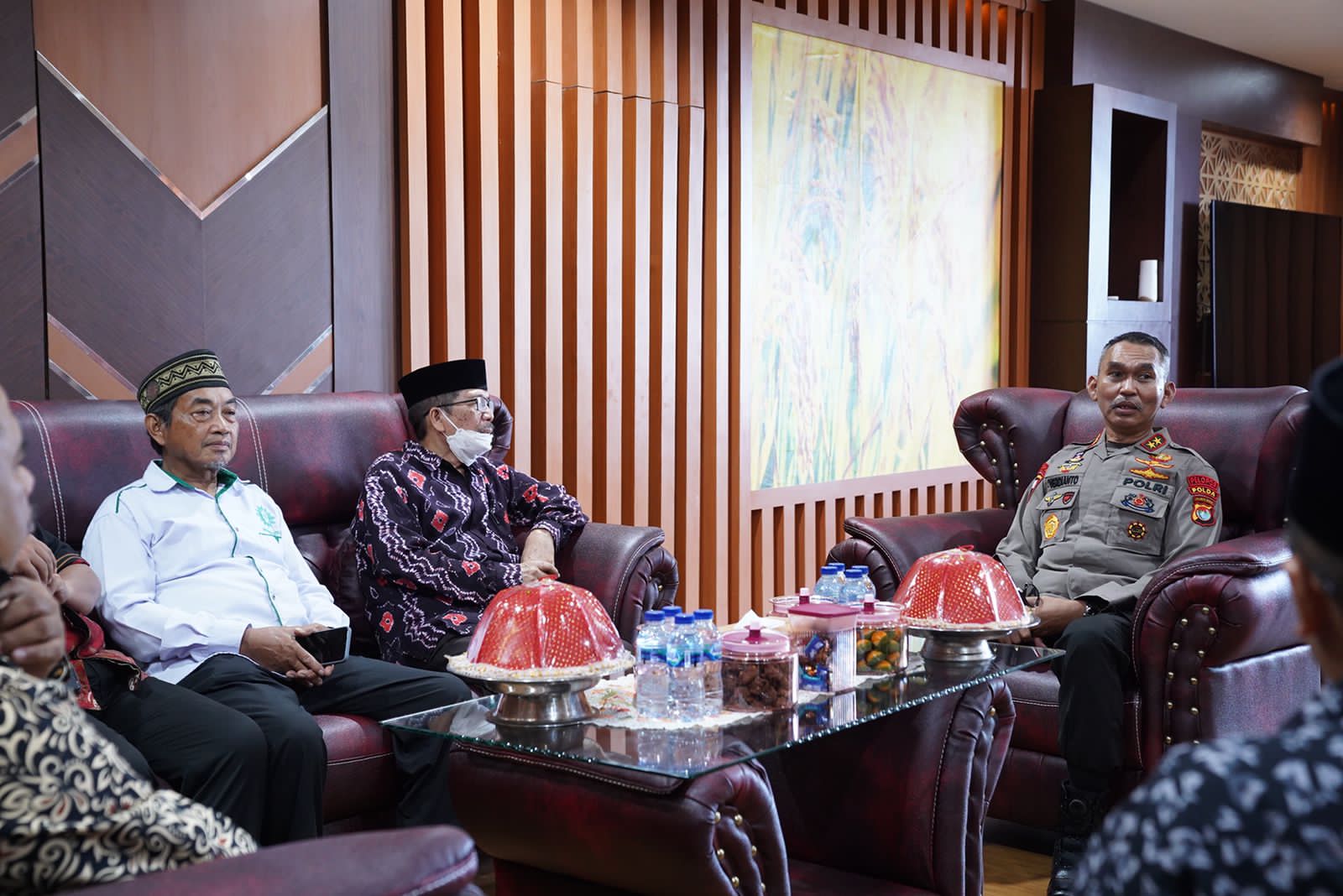 Mamuju — Kepala Kepolisian Daerah Sulawesi Barat Irjen Pol Verdianto I. Bitticaca didampingi Dir Intelkam Kombes Pol Rade Mangaraja Sinambela dan Dir Binmas Kombes Pol Andarias menerima kunjungan Ketua dan pengurus Forum komunikasi umat ber-Agama (FKUB) Sulbar di ruang kerjanya hari ini, Kamis (21/07/22).